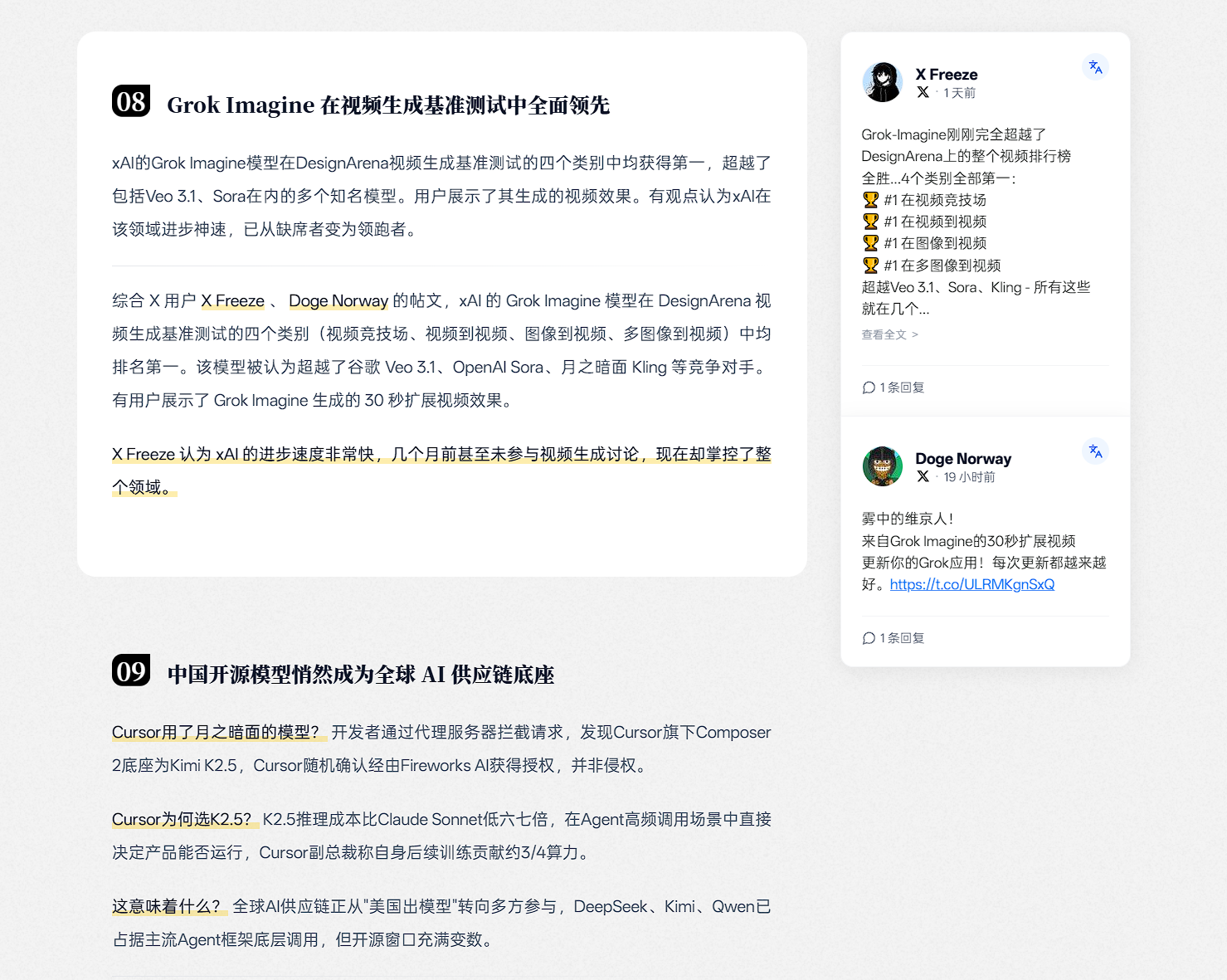 - 我们在今天上线了新版本的聚合模块。该模块在我们的内部 eval 中相较于旧版本提升了 28.06 分,相较于旧版效果提升了约 50.13%。该版本的聚合会在明天开始的推送生效。